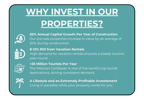 And right now, there’s no better place to invest than the booming Mexican Caribbean—a destination where your investment doesn’t just grow, it flourishes